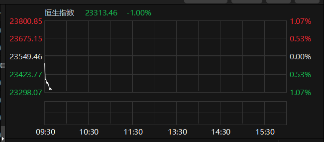 上证报中国证券网讯 5月13日,港股走低,截至9时39分,恒生指数跌幅扩大至1%,恒生科技指数跌1.5%。